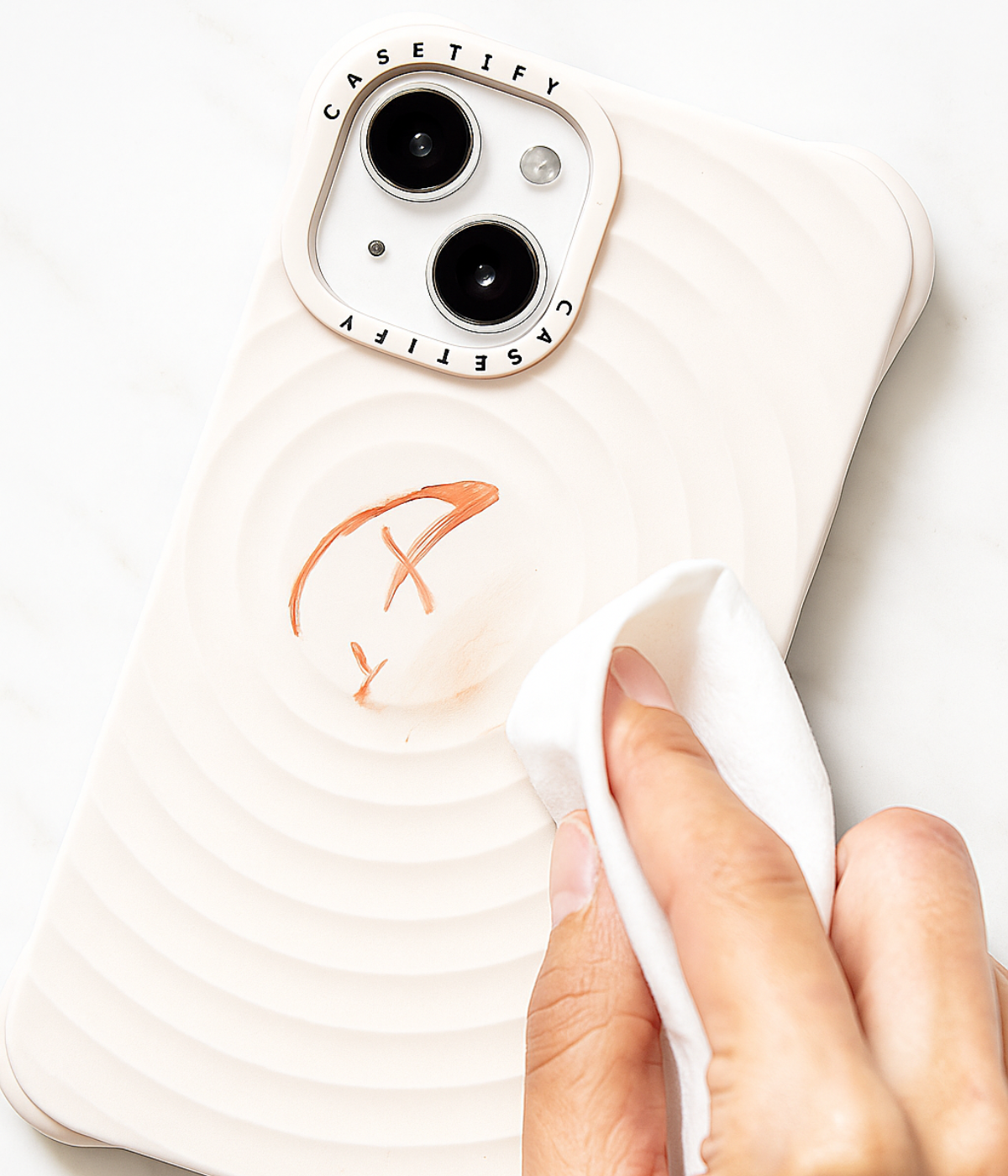 El Case Ripple no solo protege tu teléfono, también repele las manchas y se limpia al instante con una simple pasada.