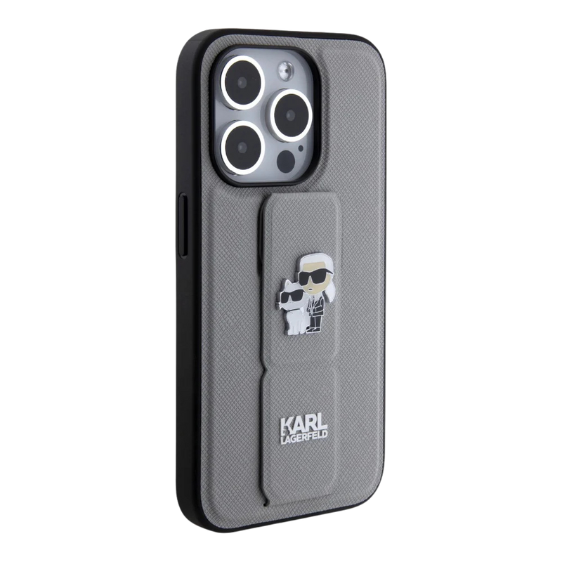 Descubre el Estuche karl lagerfeld hc gripstand saffiano kc pins silver iphone 15 pro max color gris, la combinación ideal de estilo y protección. Este estuche no solo es un accesorio esencial para tu iPhone 15 Pro Max, sino que también refleja tu buen gusto y distinción.