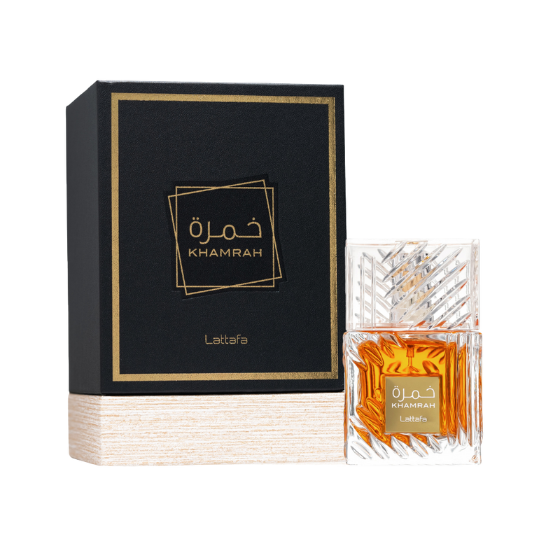 Khamrah de Lattafa Perfumes es una fragancia aromática y especiada para mujeres y hombres. Esta nueva fragancia se lanzó en 2022. Las notas de salida son Canela, Nuez Moscada y Bergamota; las notas de corazón son Dátiles, Praliné, Nardos y Mahonial; las notas de fondo son Vainilla, Haba Tonka, Madera de Ámbar, Mirra, Benjuí y Madera de Akigala.