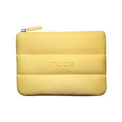 La Rhode Cosmetic Bag Yellow es el accesorio perfecto para llevar tu maquillaje, skincare o esenciales del día a día con estilo. Su diseño acolchonado tipo puffer y su color amarillo vibrante la hacen moderna, práctica y muy llamativa.