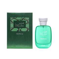 Rasasi Hawas Tropical For Him es una fragancia fresca, vibrante y moderna, diseñada para el hombre que transmite seguridad, energía y estilo natural. Su aroma combina notas acuáticas y tropicales que evocan libertad, verano y elegancia casual, perfecta para el día a día o climas cálidos.