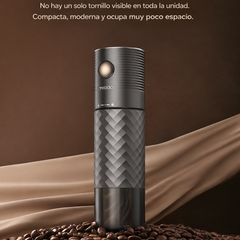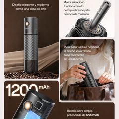 Gracias a su batería recargable de 1200 mAh, podrás moler múltiples porciones sin preocuparte por cables, y su diseño compacto cabe perfectamente en mochilas o bolsos.