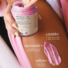 La Truly Beauty Birthday Sex Shimmer Body Butter es una mantequilla corporal ultra lujosa que transforma la piel seca, opaca o sin vida con un brillo rosado luminoso y un aroma floral elegante. Esta fórmula rica pero suave está diseñada para hidratar profundamente, reafirmar la piel y dejar un acabado radiante, convirtiéndola en el must-have de tu rutina de cuidado corporal.
