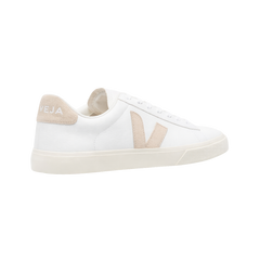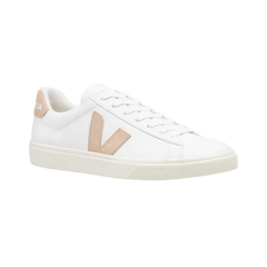 Los VEJA Campo Leather – White / Pink representan la esencia del diseño atemporal con un enfoque consciente. Su base blanca se complementa con detalles en tono natural que aportan calidez, elegancia y un look sofisticado pero relajado.